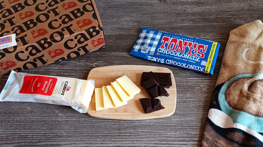 A review of Cabot Creamery and Tony’s Chocolonely recommended chocolate and cheese combinations.