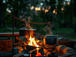 Open flames demand tough gear — cast iron, stainless steel, or titanium. Consider grates to grill burgers, a Dutch oven to simmer chili, or even a tripod to hoist a pot above the flames. Match your cookware to your menu. One-pot meals in cast iron — like beef stew or chili — are foolproof and tasty. Or go big and spit-roast a lamb leg.